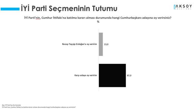 Aralık ayında siyaset gündeminde öne çıkan konuların başında MHP Genel Başkanı Devlet Bahçeli’nin, İYİ Parti Genel Başkanı Meral Akşener’e yaptığı "evine dön çağrısı" vardı. Siyaset gündemine paralel olarak Türkiye Monitörü Aralık Sayısında İYİ Parti seçmenine, İYİ Parti’nin Cumhur İttifakı’na katılması durumunda oy tercihinin nasıl olacağı soruldu. İYİ Parti seçmeninin %87’si böyle bir katılım olması ve Cumhurbaşkanı adayı olarak Recep Tayyip Erdoğan’ın gösterilmesi durumunda oy tercihini karşı adaydan yana olacağını belirtti.