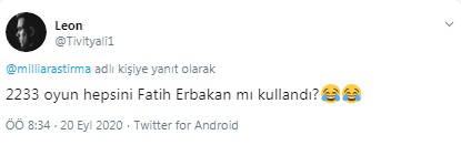 2233 kişinin katıldığı anketten çıkan sonuca göre Fatih Erbakan, aldığı yüzde 51.5'lik oyla en yakın rakibi Mansur Yavaş'ın iki kat üzerinde bir oy düzeyiyle açık ara birinci oldu. Cumhurbaşkanı Tayyip Erdoğan ise anket sonucuna göre yüzde 19.5'te kalarak üçüncü olabildi.