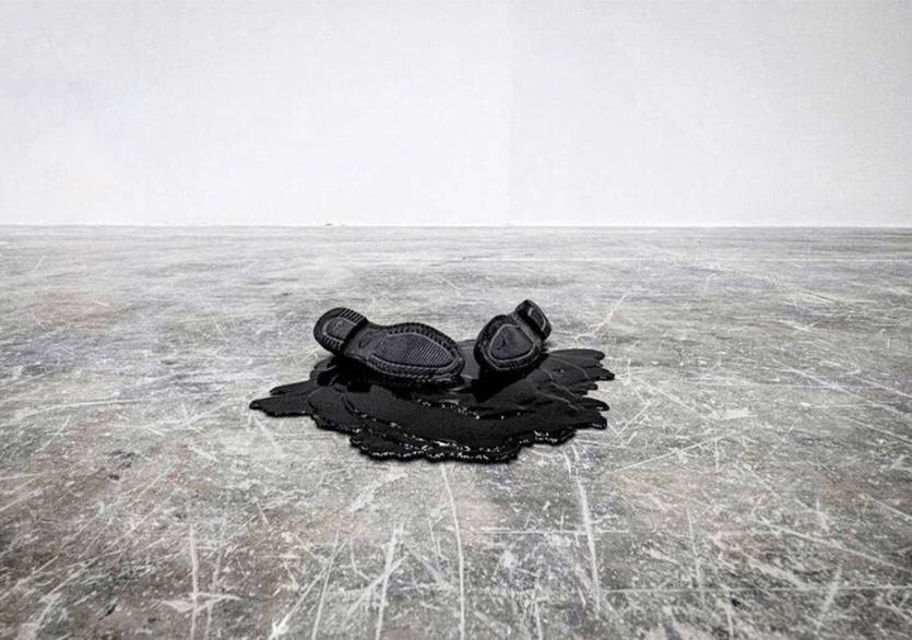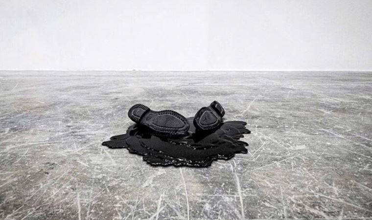 Büşra Çeğil, "FREEDOM OF SPEECH", Poliol, Ayakkabı, Olay Yeri Şeridi_Poliol, Shoes, Crime Scan Tape, 100x100x100x100 cm, 2019, Anna Laudel Istanbul