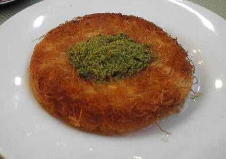 ''Peynirin taze olması çok önemli. Çünkü kadayıfa koyduğumuz peynirin mutlaka uzaması gerekiyor. Bunun için taze olması şart. Alt kısımını pişirdikten sonra soğuttuğumuz kadayıfa, yaklaşık 1.5 kilo ufalanmış tuzsuz peynir koyuyoruz. Daha sonra bunun üzerine yine tereyağıyla harmanlanmış kadayıfımızla kapatıyoruz. Altı pişen tepsimizi bu işlemin ardından ters çevirerek diğer yüzünü pişiriyoruz. Nar gibi kızarmış künefemizin üzerine su ve şekerin karışımıyla elde edilmiş şerbetimizi döküyoruz. Yaklaşık on dakika gibi kısa bir süre sonra da mis gibi kokusu, eşsiz lezzetiyle künefemiz ikram edilir hale geliyor.''