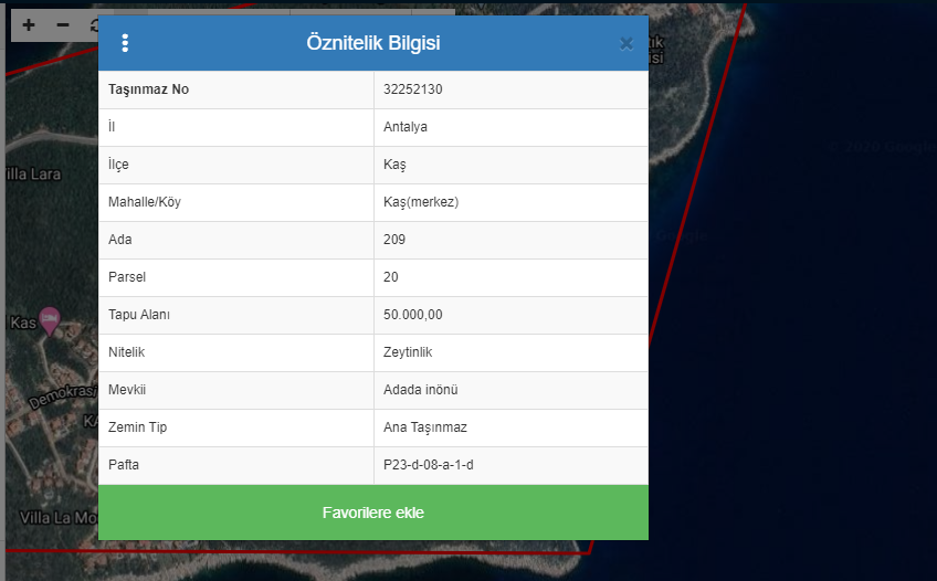 Yeni planda ‘eko turizm’ niteliği verilerek yapılaşmaya açılan zeytinlik arazinin bulunduğu parsel yaklaşık 50 bin metrekare. Tapu kayıtlarına göre dört kişiye ait olan parselin 16.656 metrekaresi Deniz Baykal’a aynı büyüklükteki diğer bir hissesi de Selçuk Akıltopu’na ait. Geri kalanı ise Süreyya Tomruk ve Hüseyin Yazıcı arasında bölünmüş. Söz konusu parselde yeniden kadastro düzeltme çalışması yapılarak arazinin ada parsel numaralarında değişikliğe gidilmesi dikkat çekiyor. Buna göre daha önce 47 ada 19 parsel olarak kayıtlı olan arazide sınır düzeltme işlemi yapılarak 6 Eylül 2018 tarihinde son haliyle tescil edilerek 209 ada 20 parsel olarak kaydı yenilenmiş.
