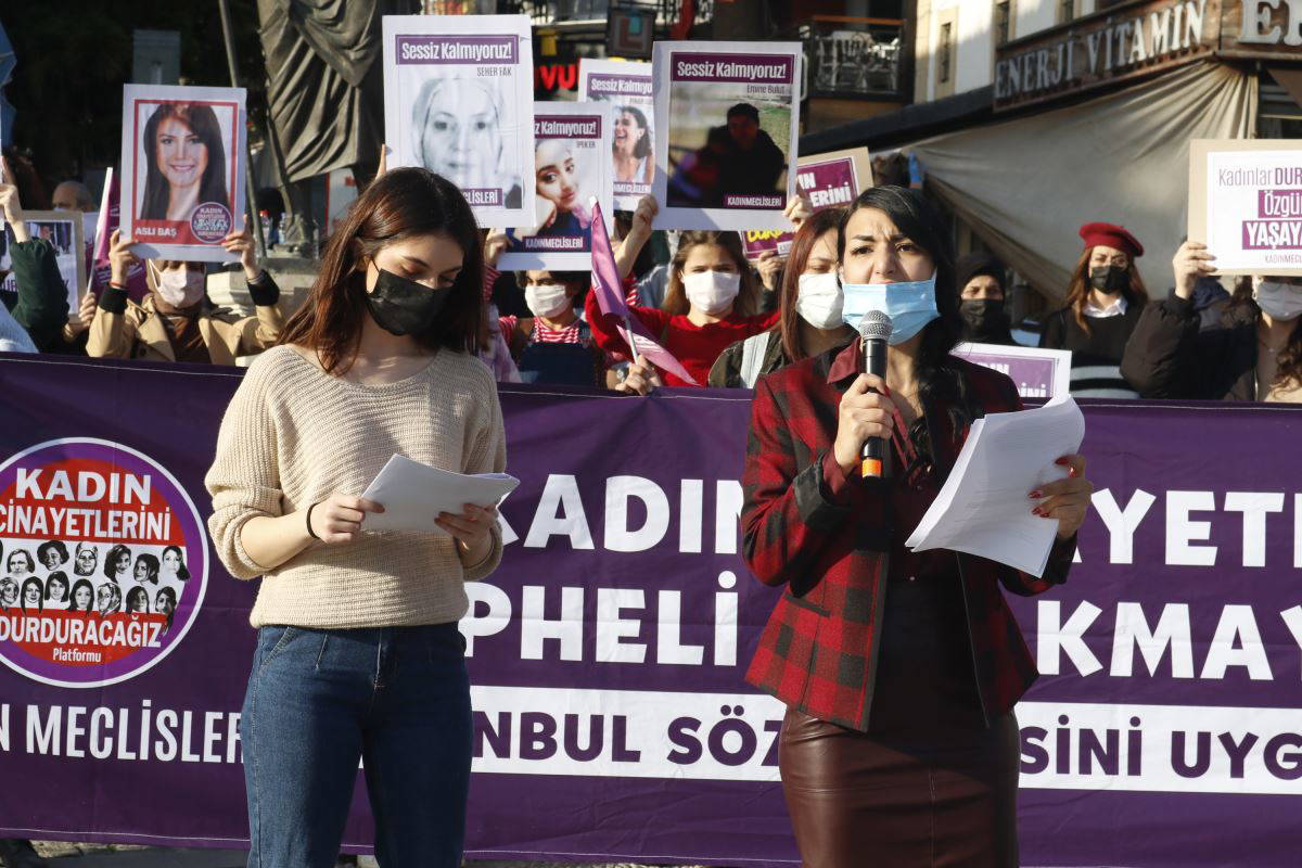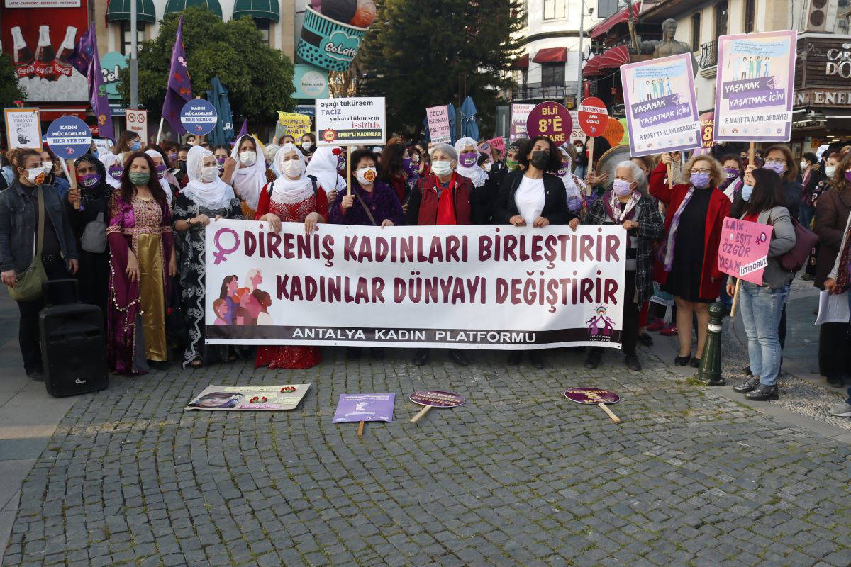Kadın Meclisi üyelerinin ardından, alanda toplanan Antalya Kadın Platformu üyeleri de açıklama yaptı. Grup adında Fatma Kayaoğlu, "Her gün 3 kadın öldürülüyor. Yaşam hakları ellerinden alınıyor. Bir yılda 300 kadın öldürülürken, bunların 181'i şüpheli şekilde gerçekleştirildi. Kadınlar mücadelelerini sürdürecekler. Yaşamın her alanında ayrımcılığa, cinsiyetçiliğe, yoksulluğa ve erkek şiddetine karşı direnmeye devam edeceğiz" diye konuştu.