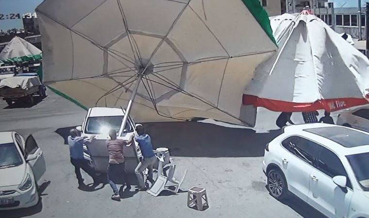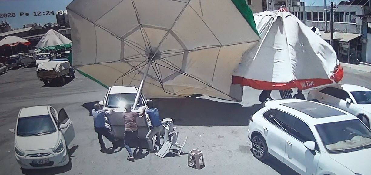 Hal esnaflarından İlyas Topçu, "Saat 12.30 civarlarında dükkanda otururken birden aşağıdan gelen lodosla birlikte bir anda bir hortum oluştu. Şemsiye bir anda arabanın üstüne yıkıldı derken diğer şemsiyelerle birlikte birinin brandasını attı, çatının üzerine uçtu. Birkaç araba zarar gördü. Şu anda durum sakin ama daha önce böyle bir olay yaşamadık. Şemsiyeleri kapatmaya bile fırsatımız olmadı her şey saniyeler içinde oldu" diye konuştu.