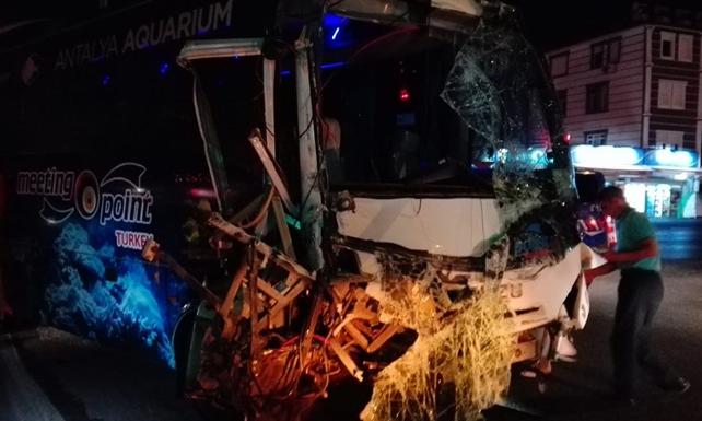Kaza, saat 20.30 sıralarında Manavgat ilçesi Evrenseki Kavşağı'nda meydana geldi. Antalya- Sivas seferini yapan Kamil Koç firmasına ait yolcu otobüsü, iddiaya göre kırmızı ışık ihlali yapınca Antalya Havalimanı'na turist götüren tur midibüsüne çarptı.