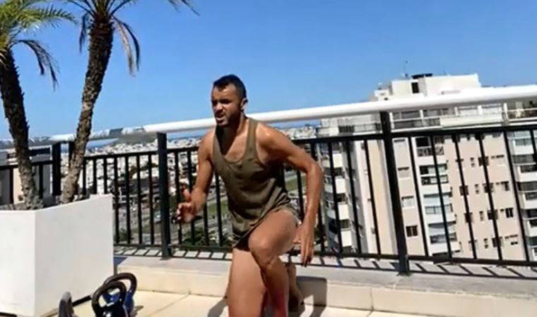 Antalyasporlu futbolcular, kendi evlerinde kamera ve tablet aracılığıyla toplu idman yapıyor.