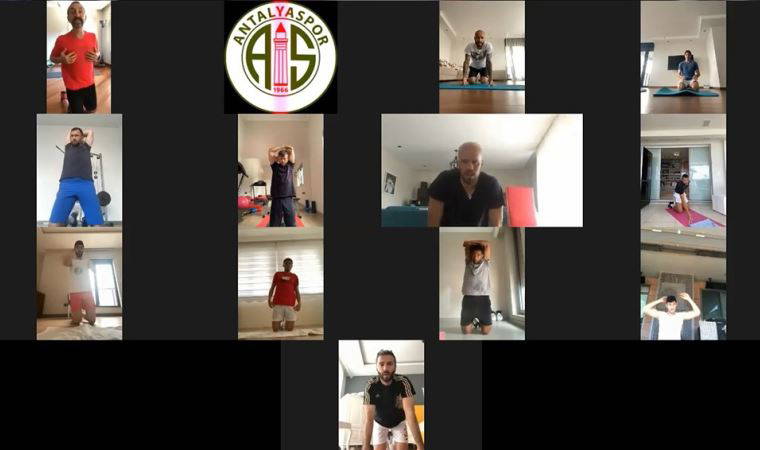 Korona virüs tedbirleri kapsamında evlerinden çıkmayan Fraport TAV Antalyaspor futbolcuları 2 günde bir telekonferans sistemi ile bir araya gelerek antrenmanlarını aksatmıyor.