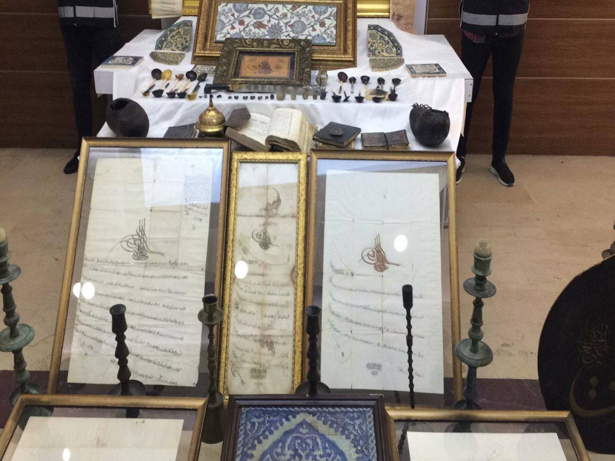 Antikacıda yapılana aramalarda; 9 Türk İslam dönemine ait yüzük, 12 değişik form ve ebatlarda şamdan, 2 şamdan altlığı, 2 âlem başı, 7 farklı form ve biçimlerde geometrik ve kare formlu seramik, 20 farklı form, biçim ve malzemelerden kulpları sedef ve değerli taşlar ve yazılarla bezenmiş boynuz kaşıklar, farklı dönem boylara ait 7 mühür, Kâbe motifli mozaik formda eser, Osmanlı Dönemi 'nin, 16.yy'ın 2. yarısına tarihlenen Şehzade Mustafa türbesine ait mimari parçalar olduğu düşünülen mozaik, 3 çerçeve içerisinde ferman, 2 tekke işi derviş Keşkül -ü fukarası, 5 hat levha, tombak, Astronomi el yazması bilim kitabı, 7 çeşitli form ve ebatlarda bilim notları ve astronomik çalışmaları olduğu düşünülen, Ruzname-i Şeyh Vefa isimli eser, küçük formda siyah hamurlu ince cidarlı seramik kase, havan ve Mevlevi başlığı formunda öğütme taşı, III. Ahmet Tuğralı 1703- 1730, usta damgalı, kapak kısmında Ashab-ı Kehf isimleri işlenmiş büyük boy gümüş divitlik, 2 çerçeve içerisinde beyaz renkli ferman, Hilliye Şerif ve güneş saati ele geçirildi.