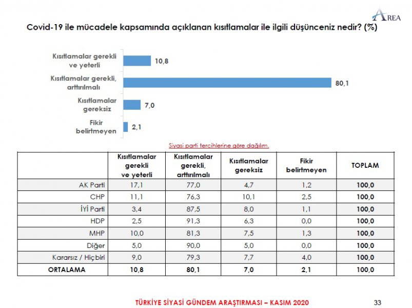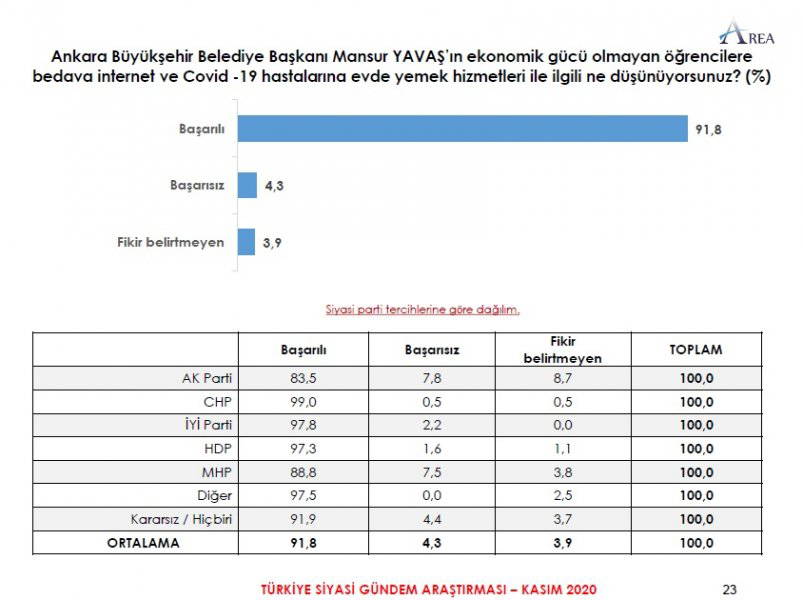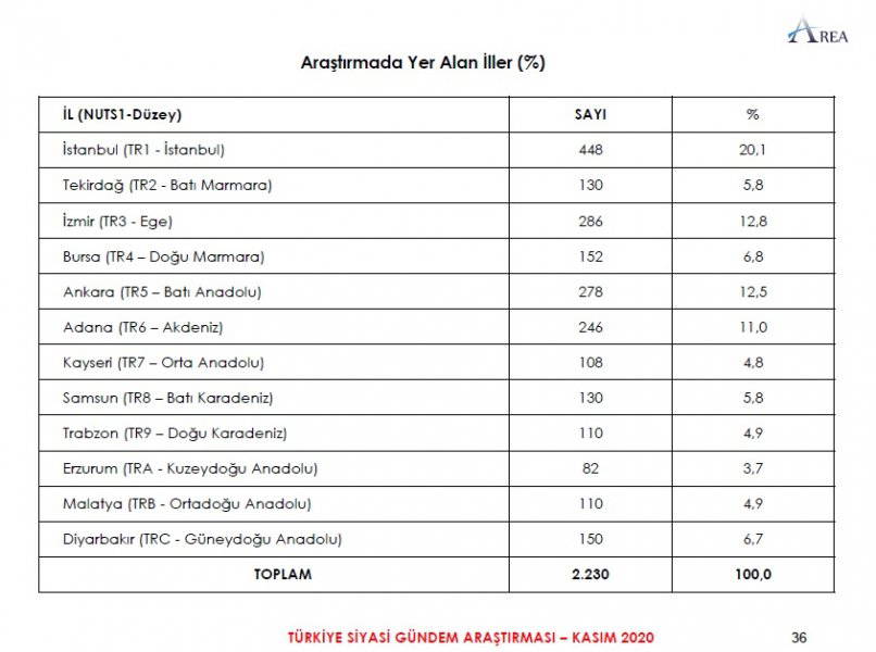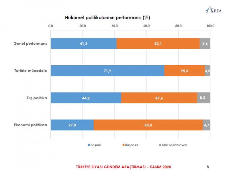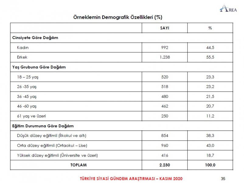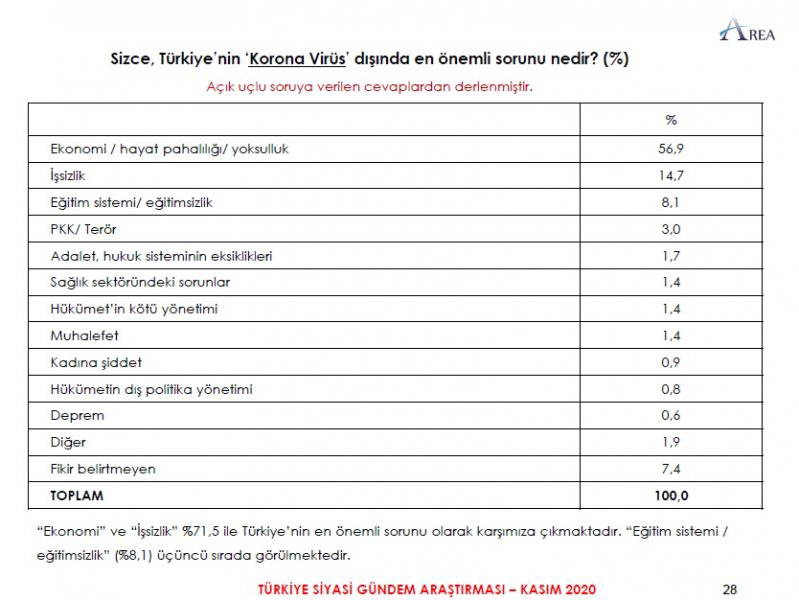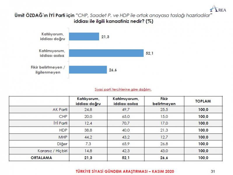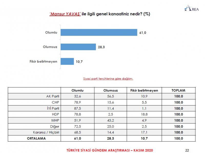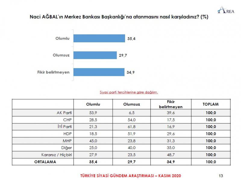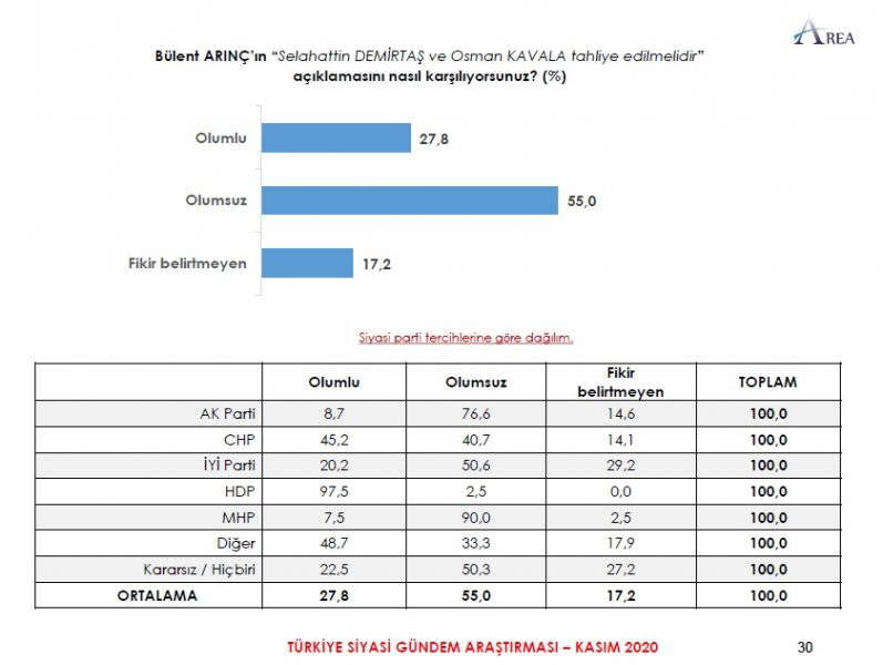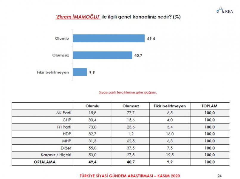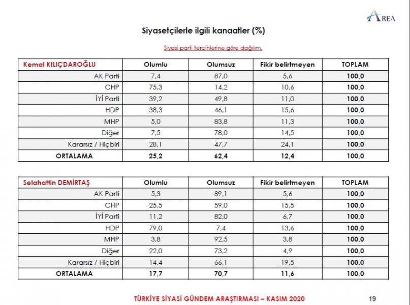 Area Araştırma'nın anketine göre AKP ve MHP'nin oluşturduğu Cumhur İttifakı'na destek oranı 45.2'ye düştü. Partilerin son oy oranları ise şöyle: