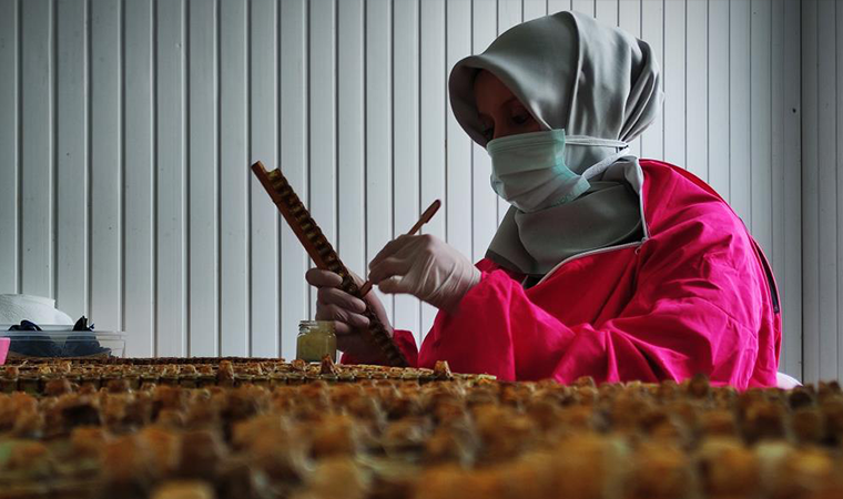 Arı sütünü gram gram sağdıklarını ifade eden Mehmet Durgut, "Bu yıl 150 kovanla arı sütü üretimine başladık. 150 kovan arıdan günlük 1 kilo süt üretimi yapıyoruz. Arı sütü üretimi Nisan ayında başlıyor. Ağustos ayına kadar devam ediyor. Arı sütünün bağışık sistemini güçlendirme ve hücre yenileme özelliği var bu sebepten dolayı yoğun ilgi görüyor. Özellikle aileler çocukların gelişimine katkı sağladığı için tercih ediyor. Beyin gelişimine önemli katkıları var. Korona virüs sürecinde yoğun talep var tüm stoklarımızı sattık. Sadece yurt içi değil yurt dışından da talep büyük, gram gram sağdığımız sütün kilosunu 8 bin liradan satıyoruz" dedi.