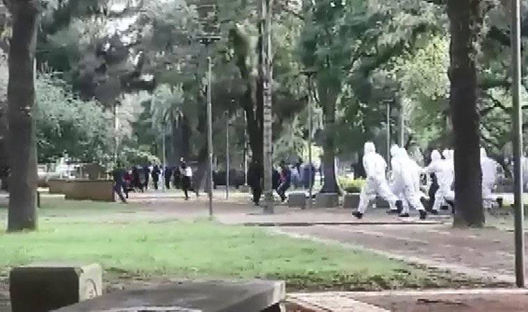 Arjantin’in Jujuy (San Salvador de Jujuy) kentinde koronavirüs salgını nedeniyle ‘zorunlu karantinaya’ uymayan ve parklarda yürümeyi, oturmayı sürdüren kişiler polis tarafından kovalandı. Yerel medya, polisin yaklaşık 30 kişiyi gözaltına aldığını duyurdu. Sosyal medyada yayınlanan görüntülerde, polisin biber gazıyla müdahale ettiği, parktakilerin ise koşarak kaçmaya çalıştıkları görüldü.
