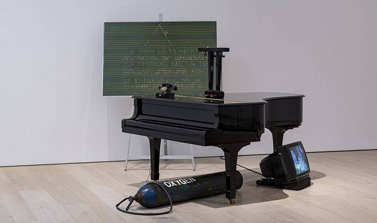 Melih Fereli ile Dinleyen Gözler İçin başlıklı grubun salonuna girerken bu işlerin çoğunun aslında müzikle güçlü bir bağ kurduğunu da fark ediyorum. Sağ duvarda göz kamaştıran sarılıkta üç alüminyum plaka sergileniyor. Sesler uzaktan belli belirsiz duyuluyor. Sanatçısı Hans Peter Kuhn, bir ses mühendisi ve besteci. Işık sarı sarı adeta içeriden dışarıya doğru yansıyor. Fereli; ‘Bir konser düşünün, bir enstrümanın sadece ses çıkardığı zaman önemli değildir, sessiz kaldığı süre de eşit olarak önemlidir. Bu da zaten kompozisyonu oluşturur’ diyor. “Sadece sese odaklanırsan sessizliğin önemini kaybedersin”. Küratör Fereli, Arter’in 200’e yakın sesle ilişkisi olan koleksiyonu arasından 23 tanesini bu sergi için seçmiş. Eserlerin çoğu sessiz, o yüzden bu işler dinleyen gözler için. Büyük salonun kapısından girmeden bir Nam June Paik yerleştirmesi görüyoruz. Paik uluslararası izleyiciye sahip bir sanatçı ve müziği görselleştirmesiyle tanınıyor. Dünyanın belli başlı müzelerinde yerleştirmeleri ve video çalışmaları var. Nam June Paik’in burada 78-33 ve 45liklerden oluşan plakları dizdiği bir plakçaları var. Bu pikabın kolu uzatılmış ve plaklar üzerine yerleştirilmiş adeta sessiz bir ses heykeli. Büyük kapıdan içeri girince Türk çağdaş sanatının erken dönem temsilcilerinden Füsun Onur’un (sanatçı, Venedik Sanat Bienali pandemiden kapılarını açabilirse Türkiyeyi temsil edecek) Fısıltı isimli yerleştirmesi yer alıyor. Çapraz bacaklı yedi sehpa giderek küçülüp, sessizleşip yedi notanın fısıltıya dönmesini ve sessizliğe kavuşmasını anlatıyor. Serginin bu bölümünün diğer Türk sanatçısı Osman Dinç ve yapıtı Ahlat Ağacına Ağıt. Denizli yöresinde sayıları gittikçe azalan ahlat ağaçlarının fotoğrafları, 80 adet nota sehpasının üzerine çalınacak birer besteymişçesine tutuşturulmuş. Adeta bir sessizlik senfonisi gibi... Ahlat Ağacı Senfonisi’nin nota sehpalarının, yani koronun en önünde de dört solist- alto, tenor, soprano ve bas - duruyor. İspanyol sanatçı Carles Santos, bir piyanist. Kariyerinin ortalarında müziği ön plana koyarak film, video ve fotoğraf yerleştirmeleri yapıyor. “Ne sanat ne değil”i sorguluyor ve burjuvaların sanatçıya telkinine de fena halde kızıyor. Gomalak cilalı maun bir piyano fotoğrafı duvara asılı. Altında yerde, parçaladığı, tahrip ettiği aynı piyanonun molozlarını yerleştirmiş ‘ben bu şartlanmalara baş kaldırıyorum’ diyor. Bir Fluxus sanatçısı Dick Higgins’in iki işinden 48 No’lu Senfoni, üzerine saçmalı tüfekle ateş ettiği bir nota kâğıdına boyalarla yaptığı müdahalelerle adeta tüfek sesini bizlere de dinletmek istiyor. Kozlowski’nin Etik Üzerine Denemeler isimli yapıtı, Danimarkalı sanatçı Lene Adler-Petersen’in kaşık helvalarını andıran alçı kalıpları ile beyazın her tonundaki duvar yerleştirmeleri, İzlandalı sanaçı Fridfinnsson’un boyalarını karıştırdığı çubuklarla 10 metrelik tavandan aşağı yerleştirdiği nesneleri diğer işler. Beni yaratıcılığıyla etkileyen iş ise Alman sanatçı Annette Ruenzler’in 9.5 metrelik tavandan aşağı sallandırdığı ucunda buğulu ampul takılı elektrik kordonlarının, yani 12 adet aydınlatma armatürünün tasarımları ve kaliteleri farklı bardakların ve sürahinin içinde işlevsel özelliklerini sonlandırıp, estetik niteliklerini ortaya çıkarmaları. Basit dille söylenirse bardakların içine kadar giren ampullerin görsel bir şölen yaratmaları. Tepeden vuran ışık hafif bir esintiyle bardakların içinden yere süzülerek yerdeki yansımaları ve sessizce çıkardıkları bir gürültüyü görmemizi ve duymamızı sağlıyor. Fereli’nin “koleksiyondaki yabancı sanatçılardan en önemli eser bu” dediği Joesph Beuys’un Klavier Oxygen isimli kuyruklu piyano, oksijen tüpü, karatahta (aslında yeşil) ve eski usul telefondan oluşan yerleştirmenin önüne geliyoruz. Joseph Beuys’un ölümünden üç ay kadar önce hasta yatağından yönettiği bir performansın yerleştirmesi bu. 1985’te Hamburg’da bir okulda düzenlenen bir performans. Beuys konser boyunca talimatlarını piyanonun üzerinde duran kara telefonla hoparlör aracılığıyla aktarıyor. Yeşil renkli okul tahtasında da “bir sanat yapıtını layıkıyla tasvir edebilmek için öncelikle aracın kendisinin özgür olması gerekir” yazıyor. Los Angeles’li sanatçı Barbara Bloom’un Körler İçin İşler işini atlamayalım. Yere serili mavi bir platformda Braille (körler alfabesi) ile yazılı metni görebilenler okuyamıyor, çünkü bu alfabeyi bilmiyor, okuyabilenler ise göremiyor. Buradan Melih Fereli ile birlikte Yağmur Ormanları’na geçiş yapıtı olan Julius Koller’in tenis ağlarıyla sarılıp sarmalanmış beyaz piyanosunun önünden geçiyoruz. Ne burjuvalar tenis oynanabiliyor ne de tenis filesiyle sarılmış piyano ses çıkarabiliyor.
