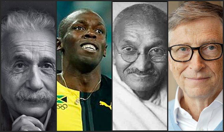Alan Turing, Albert Casals, Albert Einstein, Albert Espinosa, Andre Agassi, Antoine de Saint-Exupéry, Barack Obama, Bill Gates, Bobby Fischer, Charles Darwin, Che Guevara, Dalay Lama, Félix Rodríguez de la Fuente, Haile Gebrselassie, Harry Houdini, Harvey Milk, İkbal Mesih, Isaac Newton, Jacques Yves Cousteau, Jamie Oliver, John Lennon, Jules Verne, Kelvin Doe, Kílian Jornet, Leonardo Da Vinci, Lili Elbe, Lionel Messi, Louis Braille, Ludwig Van Beethoven, Mahatma Gandhi, Martin Luther King, Mesud Hasani, Nelson Mandela, Nikola Tesla, Oskar Schindler, Paul Poiret, Pedro Duque, Primo Levi, Rudolf Nureyev, Roald Amundsen, Sebastião Salgado, Shigeru Ban, Stephen Hawking, Steve Irwin, Steven Spielberg, Tenzing Norgay, Usain Bolt, Vicente Ferrer, William Shakespeare, Wolfgang Amadeus Mozart...