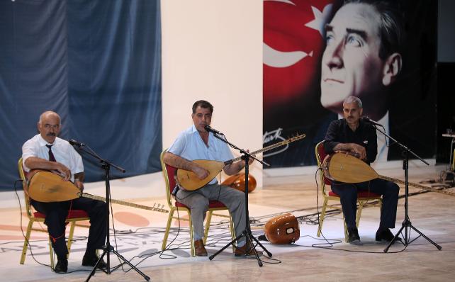 Konuşmaların ardından sahneye çıkan sanatçılar Aşıklık geleneğinden örnekler sergilerken, gösterinin son bölümünde Aşık Nuri Demiroğlu ile Aşık Mehmet Divanoğlu’nun usta-çırak atışması keyifle izlendi. Etkinliğin sonunda Başkanvekili Zafer Levent Yıldır, Aşıklar Celal Bulut, Mustafa Aydın, Nuri Demiroğlu, Adem Demir, Ensar İpekoğlu, Mehmet Divanoğlu, Güngör Kaptan, Kenan İnkayalı, Bedri Sinan, Firgani Koluçolak, Serdar Çeliker, İskender Yıldırım ve Ozan Rıza Çelebi’ye teşekkür ederken, İzmir Halk Aşıkları Derneği Başkanı Celal Bulut’a da çiçek verdi.
