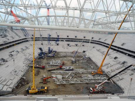 Galatasaray'ın yeni stadı Türk Telekom Arena'da inşaatın sonuna geliniyor. Çatı bağlantı parçalarının montajının sürdüğü ve günde ortalama üç parçanın monte edildiği inşaatta, kale arkası tribündeki destek parçalarının montajı tamamlandığı belirtildi.