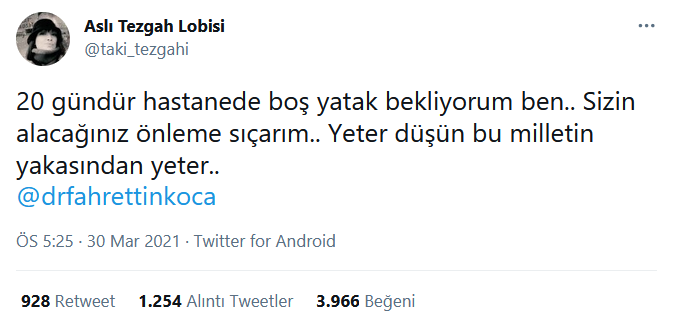 Özkısırlar’ın hastaneye yatmadan önce Twitter hesabından yaptığı paylaşımlar ise şöyleydi: