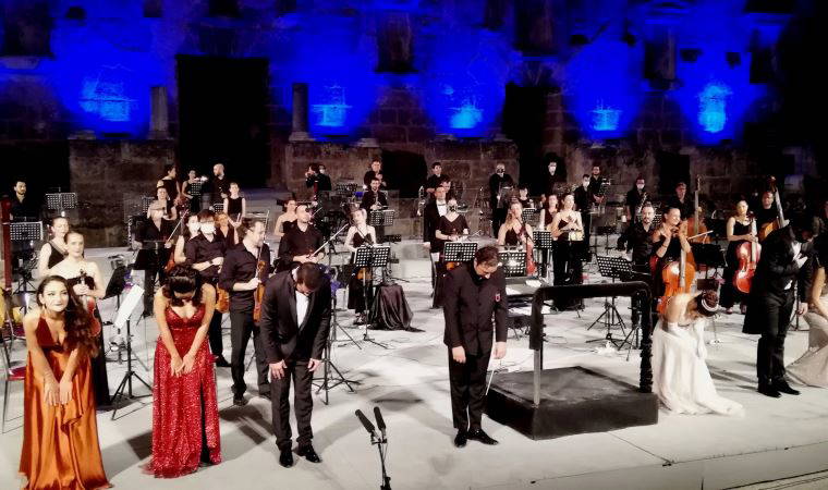 Şef Cem Orhan'ın yönettiği konserde mesafeli- maskeli oturtulan yerli ve yabancı izleyiciler, tarihi Aspendos Tiyatrosu'nun büyüleyen atmosferinde solistlerin orkestra eşliğinde seslendirdiği opera şarkılarını ve müziklerini uzun bir aradan sonra özlem ve keyifle dinledi.