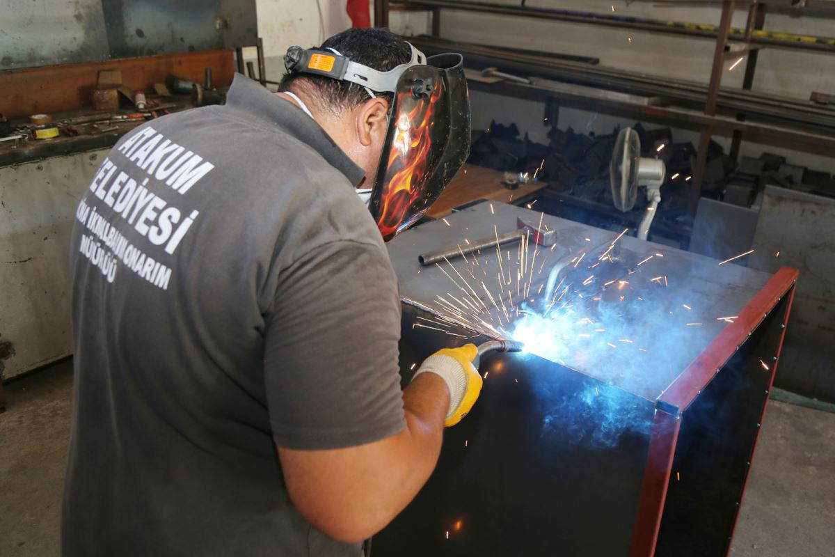 Atakum Belediyesi, Samsun’un en hızlı büyüyen ilçesinde yurttaşlara sunulan hizmeti etkin ve ekonomik hale getirmek için üretim bantları oluşturdu. Atakum Belediye Başkanı Av. Cemil Deveci’nin talimatıyla yaklaşık dört ay önce kurulan Makina İkmal Bakım ve Onarım Müdürlüğü, kendi atölyelerinde gerçekleştirdiği imalatlar ile hizmet sürecindeki aracıları ortadan kaldırırken, yurttaşların vergileri oluşan belediye bütçesinin etkin kullanımında önemli tasarruf kalemleri oluşturuyor. Müdürlüğe bağlı ekipler, Atakum Belediyesi’nin Alanlı Mahallesi’nde bulunan şantiye alanını üretim ve onarım üssüne dönüştürdü. Makine İkmal Bakım ve Onarım Müdürlüğü’ne bağlı birimlerden biri olan Konteyner Üretim ve Tamir Atölyesi’nde imal edilen çöp konteynerleri, kullanıma hazır halde satın alınan ürünlere göre yüzde 50 maliyetle üretilebiliyor.