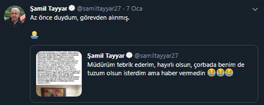 Tayyar’ın gündeme getirdiği konu sonrası İnal görevden alındı. İnal’ın görevden alındığını da yine Şamil Tayyar sosyal medya üzerinden yaptığı, “Az önce duydum görevden alınmış” paylaşımı ile duyurdu.