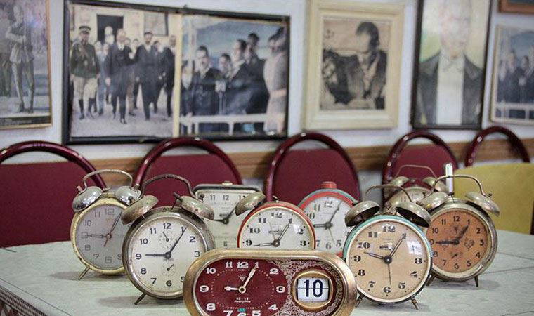 İş yerindeki 11 masa saati ile 1 duvar saatini de Atatürk'ün ölüm saati 09.05'e ayarlayan Doğru, kahvehanesinde Ata'ya olan saygısını her daim gösteriyor.