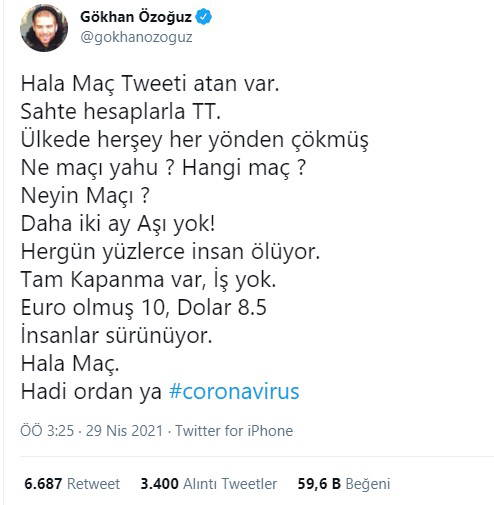 Athena grubunun solisti Gökhan Özoğuz sosyal medya hesabından yaptığı paylaşımlarla gündem olmaya devam ediyor.