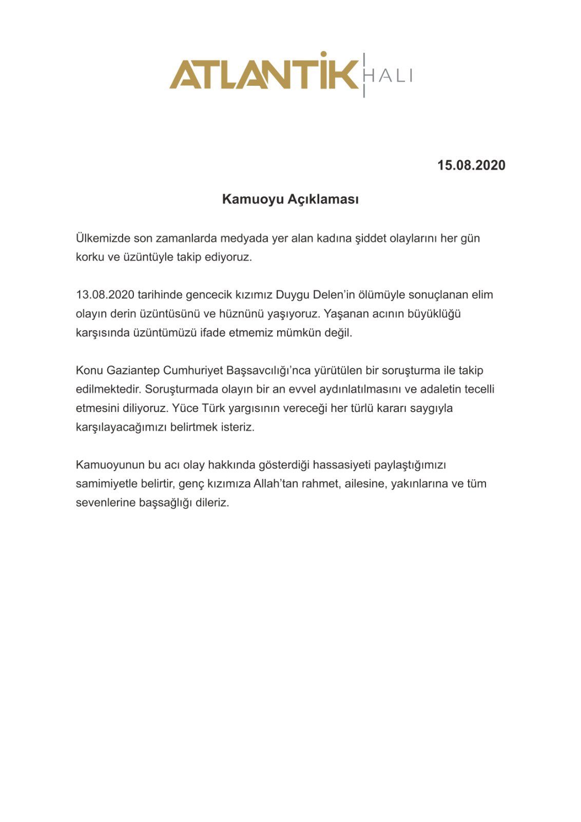 Mehmet Kaplan’ın babası Bileç Kaplan’a ait Atlantik Halı isimli firmadan ise bir açıklama yapıldı.