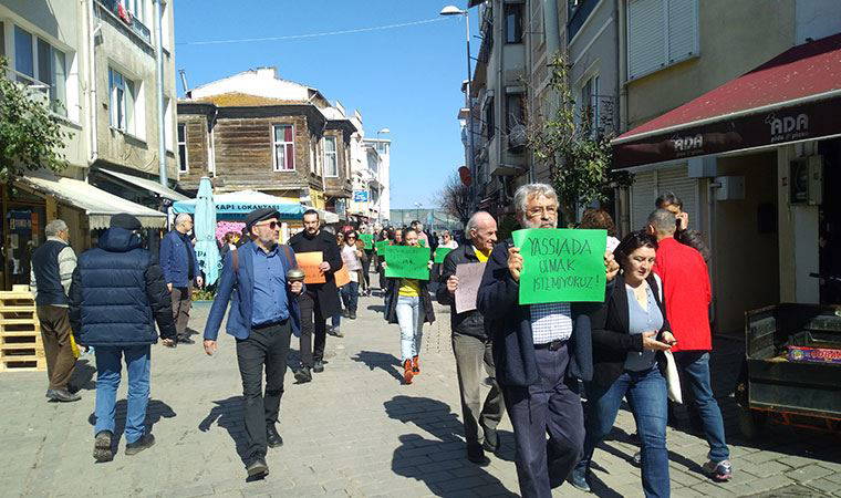 Heybelia’daki Fayton Durağı’nda buluşarak at ahırlarına yürüyen yurttaşlar “Yassıada olmak istemiyoruz”, “At bahane, imar rantı şahane”, “Faytonu kaldırmak tarihimizi yok etmektir” dövizleri açarak karantina altındaki atların özgürlüğe kavuşmasını istedi. At ahırlarındaki faytoncuların da yer aldığı grup adına açıklamalarda bulunan Tarih Vakfı’nın kurucularından Orhan Silier “3 Haziran 1910’da 80 bin köpek Sivri Ada’ya (Hayırsız Ada) getirildi. Günlerce aç, susuz kalan köpekler Sivri Ada’da ölüme terk edildi. 110 yıl sonra yine aynı şeyi yapmak istiyorlar. Bizim yapmamız gereken akıllıca öneriler sunmak olacak” diye konuştu. Faytonların kaldırılmasının sebebinin Adalar’a yapılması planlanan imarı hızlandırmak olduğunu iddia eden Büyükada sakini Recep Emed “Adalar sit alanı olduğu için imar yapılması planlanıyor. İmarın önündeki tek engel ise faytonlar olarak görülüyor” dedi. Atlarda ruam var denilerek tüm atların karantinaya alındığını da belirten Emed, hiçbir atın sahibine ruam testi sonucunun verilmediğini de iddia etti. Toplantı sonrasında varılan sonuçta Heybeliada’daki atlara nalbant istemek için Türkiye Jokey Kulübü’ne başvurulacağı belirtildi.