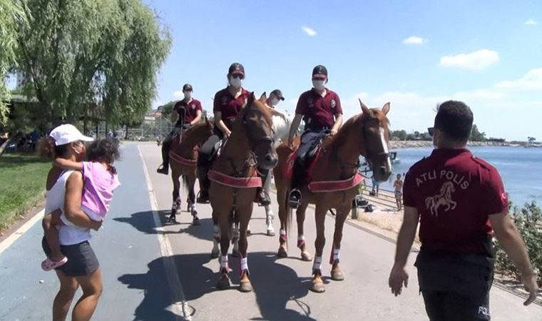 İstanbul Emniyet Müdürlüğü Çevik Kuvvet Şube Müdürlüğü Atlı Birlik Grup Amirliği'ne bağlı atlı polisler ve Toplum Destekli Şube Müdürlüğüne bağlı ekipler, Kadıköy Bostancı Sahili'nde denetim yaptı.