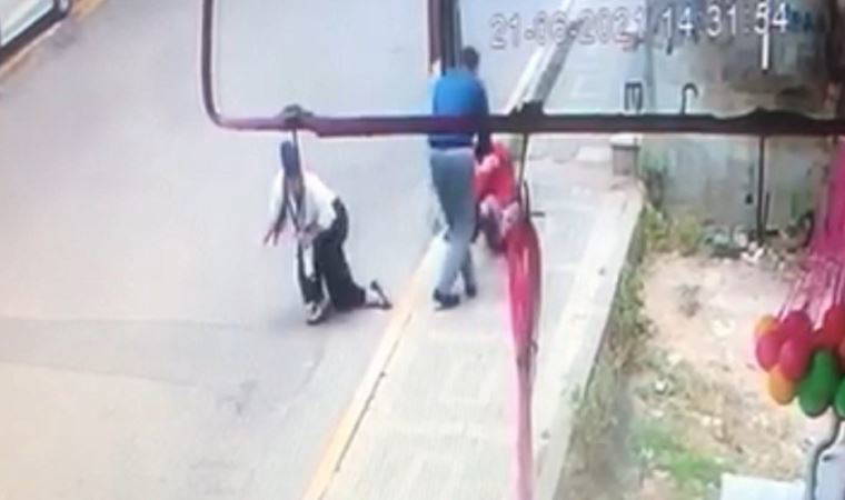 Yaralanan kadın kaldırımda yere yığıldı.