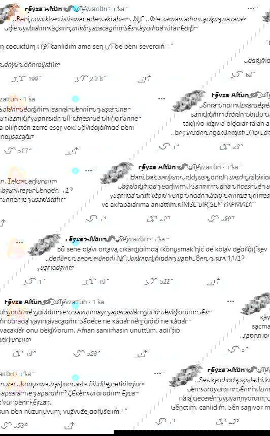 Aktivist ve avukat Feyza Altun, sosyal medya hesabı Twitter'dan yayımladığı tweetlerle, çocuk yaşta uğradığı istismarı ifşa etti.