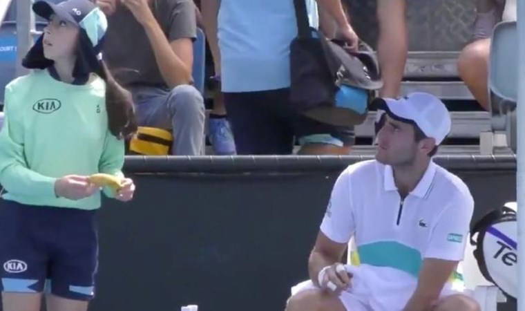 Avustralya Açık Tenis Turnuvası maçında hakem, Fransız tenisçi Elliot Benchetrit'nin molada muzunu top toplayıcıya soydurmasına izin vermedi.