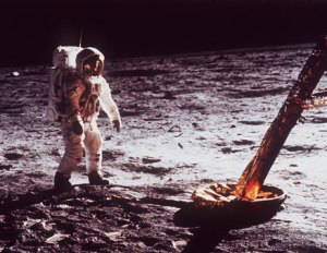 Apollo-11'in astronot kaptan pilotu Armstrong, sadece 11 saniye maziye giderek Apollo-11 manevrası için çok kısa konuştu. Ama Armstrong, ABD'nin Hitler Almanyası'ndan devşirdiği büyük roket mühendisi Wernher von Braun (1912-1977) gibi Apollo Satürn-5 roketlerinin öncüsü olan Amerikalı mühendis Robert Goddard (1882-1945) üzerine konuştu.