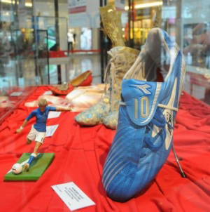 İlk gününde büyük ilgi gören sergide, 2006 Dünya Kupası finalinde İtalyan futbolcu Francesco Totti'nin giydiği kramponlar da yer alıyor.