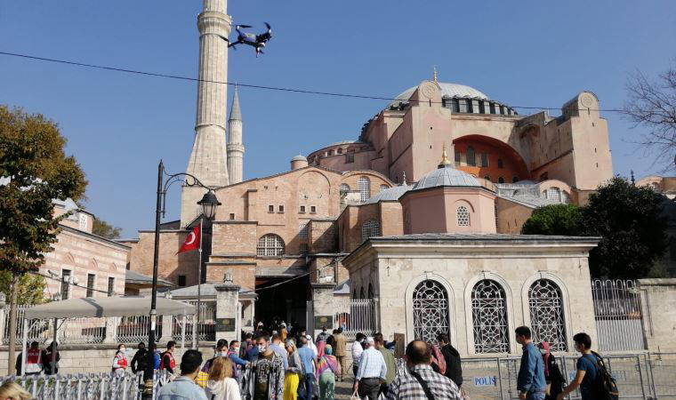 Koronavirüs ile mücadele kapsamında Sultanahmet Meydanı ve Ayasofya önünde dron destekli denetim yapıldı