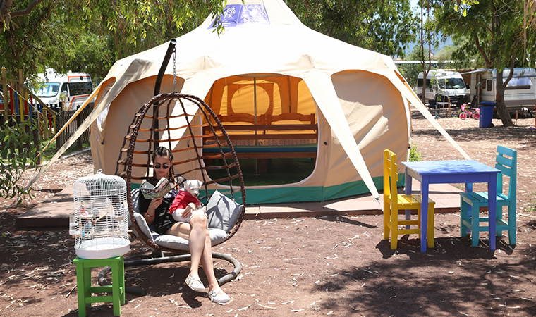 Karavanlarıyla yolculuk yapan ve kamp alanında kendi karavanlarında ailesiyle birlikte kalan Ülkü Pınarbaşı, uzun zamandır yolda olduklarını belirtti. Kamp alanına biriken çamaşırlarını yıkamak ve ihtiyaçlarını gidermek için geldiklerini ifade eden Pınarbaşı, "Burayı çok beğendim, çok düzenli ve çok temiz. Genellikle kamp alanları bakımsız olur ve çöp bir sorundur, burada ise gayet bakımlı ve hiç bir yerde çöp yok. Denize yakın olması da özellikle çocuklarımız için çok güzel. Yaklaşık 25 gündür yoldayız, ilk defa bu kadar sıcak bir denize denk geldik" şeklinde konuştu.