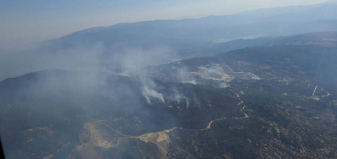 Ekipler, Çine ilçesinde kısmen kontrol altına alınan ancak Yatağan ilçesindeki sarp bölgeye kadar ulaşan yangını söndürmeye çalışıyor.