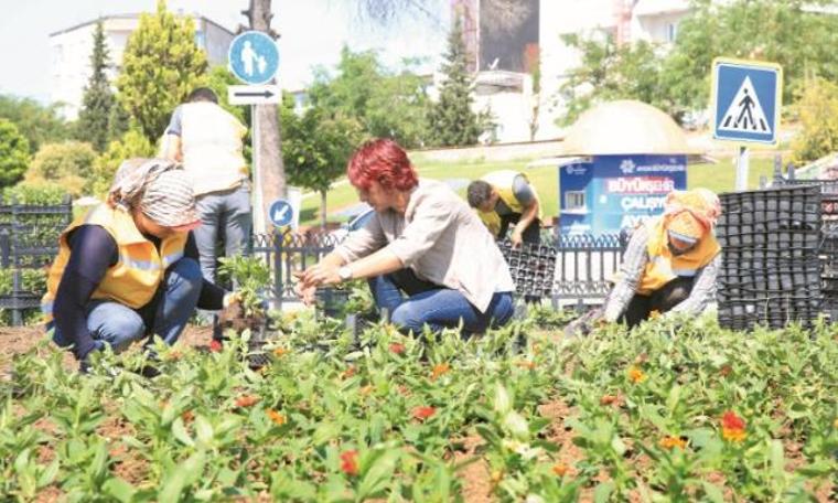 Çineli kadınlar Aydın’ı güzelleştiren çiçekleri hem yetiştirip hem de ekiyor.