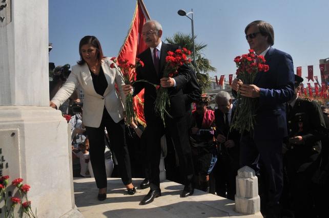 Tören Abide Meydanı'nda bulunan kurutuluş mücadelesinin simgesi 7 Eylül Şehitler Abidesi'ne Vali Yardımcısı Hulusi Arat, CHP Genel Başkanı Kılıçdaroğlu, Başkan Çerçioğlu ile protokol üyeleri tarafından karanfil sunulmasıyla sona erdi.