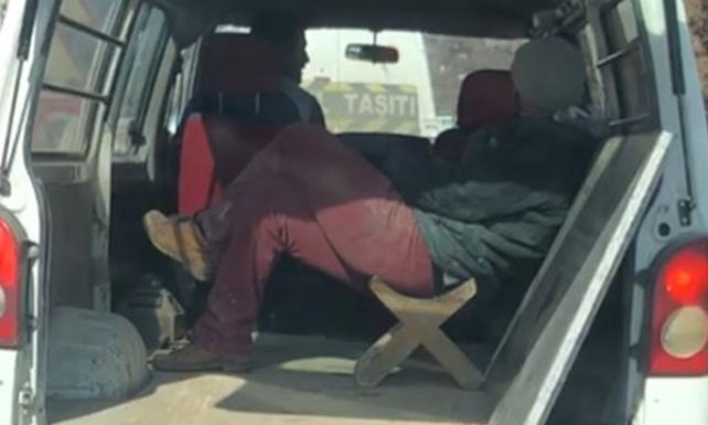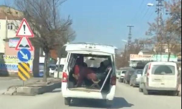 Kent merkezindeki Sanayi Mahallesi'nde bir kişi, bagaj kapağı açık hafif ticari araçta taburede oturarak yolculuk yaptı. Çevredekilerin tepki ve şaşkınlıkla izlediği kişi, bacak bacak üstüne atarak rahat tavırlarla yola devam etti. Araç bir süre sonra gözden kayboldu. Mermer taşınan araçtaki tehlikeli yolculuk cep telefonuyla görüntülendi.