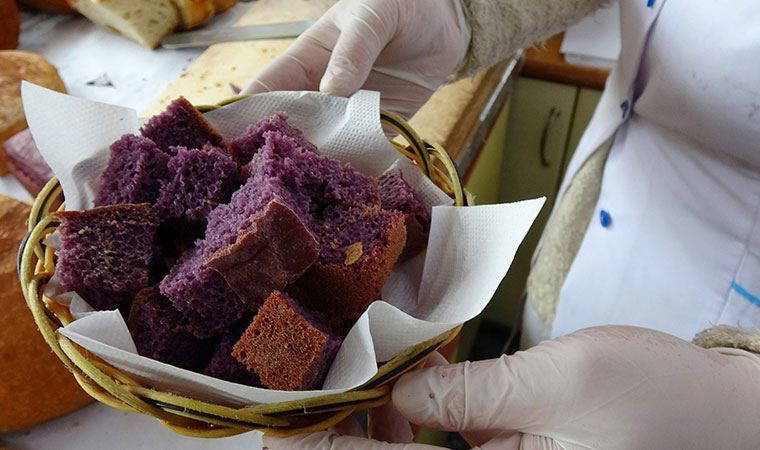 Kutoğlu, piyasada mor ekmek olarak satılan ancak gıda boyasıyla renklendirilen ekmek ile doğal karışım kullanılan ekmeği limon testi yapılarak ayırt edilebileceğini belirterek, "Gıda boyaları hamurdan ayrılamaz. Mor ekmeğin üzerine limon sıktığınız zaman mor olan rengi zamanla kırmızıya dönüşüyor. Bu sayede gerçek olup olmadığını anlayabiliyoruz" dedi.