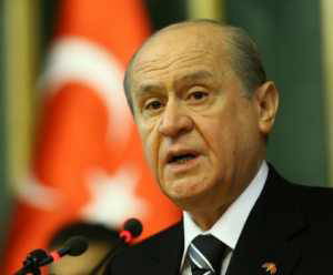 Bahçeli, terörle mücadele konusunda çare, çözüm ve fırsat adı altında topluma teslimiyet şartlarının dayatılmak istendiğini söyledi. Son 30 günlük süre içinde 15 şehit verildiğini, 23 güvenlik mensubunun yaralandığını hatırlatan Bahçeli, "Ve bütün bu tablo Türk Silahlı Kuvvetleri'nin silah bırakması çağrılarının alenen yapıldığı, hükümetin bölücüleri cesaretlendirdiği bir karanlık ortamda şekillendirilmek istenmektedir" dedi. 'Kandil Dağından mesaj taşıyan kuryelerin teröristlerin mesajlarını tefrika ettiği, İçişleri Bakanının bu zırvaları muhatap alarak önemli bulduğu, İmralı'nın misafirhaneye çevrilmeye çalışıldığı, akil adam arayışının hız kazandığı" bir sürecin millete dayatılmak istendiğini savunan Bahçeli, "AKP'nin siyasi çözüm adı altında hayata geçirmeyi amaçladığı bu süreç, Türkiye'de etnik temelde ayrı bir millet ve milli azınlık olduğunun kabulünü ve devletin niteliği ve yapısının bu ayrışmayı hukuki ve siyasi temel kazandıracak şekilde yeniden düzenlenmesini öngören bir çözülme sürecidir. Anayasanının değiştirilemeyecek 3'ncü maddesine açıkça aykırılık teşkil edecek şekilde etnik köken ve dil temelinde milli azınlıklar yaratmaya çabalamak Anayasamıza göre mümkün değildir. Böylesi bir niyet taşıyarak bu suça yeltenenleri 'devletin bağımsızlığına, ülkesi ve milletiyle bölünmez bütünlüğüne' aykırı fiillerin de odağı haline gelmemeleri konusunda uyarıyorum. İster bu uyarıyı dikkate alarak meşru ve anayasal çizgide siyaset yapmaya devam ederler, isterlerse partilerini ve Türkiye'yi yeni ve farklı bir tartışma ve çatışma ortamına sürükleyerek bunalıma kapı açarlar. Bu aşamadan sonra kendilerinin bilecekleri iştir" diye konuştu.