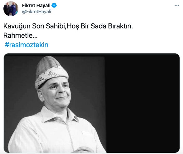Hayali, “Kavuğun son sahibi, hoş bir sada bıraktın. Rahmetle...” ifadelerini kullandı. Hayali, daha sonra yaptığı paylaşımda "Kavuğun sahibi değerli sanatçımız Şevket Çoruhtur. Son ifadesi sehven kullanılmıştır" mesajını paylaştı.