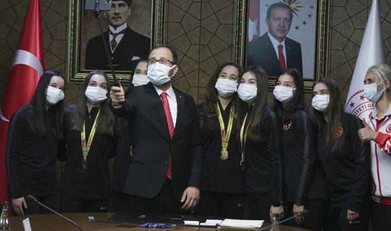 Gençlik ve Spor Bakanı Mehmet Muharrem Kasapoğlu, 3 çember 2 labut aletinde Avrupa şampiyonu olan Ritmik Cimnastik Grup Milli Takımı'nı kabul etti. Bakan Kasapoğlu, ay-yıldızlı cimnastikçileri kutlayarak, "Muhteşem bir hikayeyi, muhteşem bir başarıyı yazdılar ve tarihte bir ilki yaşattılar. Bu sporcular şu an Gençlik ve Spor Bakanlığı'ndalar. Kendi bakanlıklarındalar. Ben her birinizi ayrı ayrı kutluyorum. Sizler bizim iftihar vesilemizsiniz" dedi.