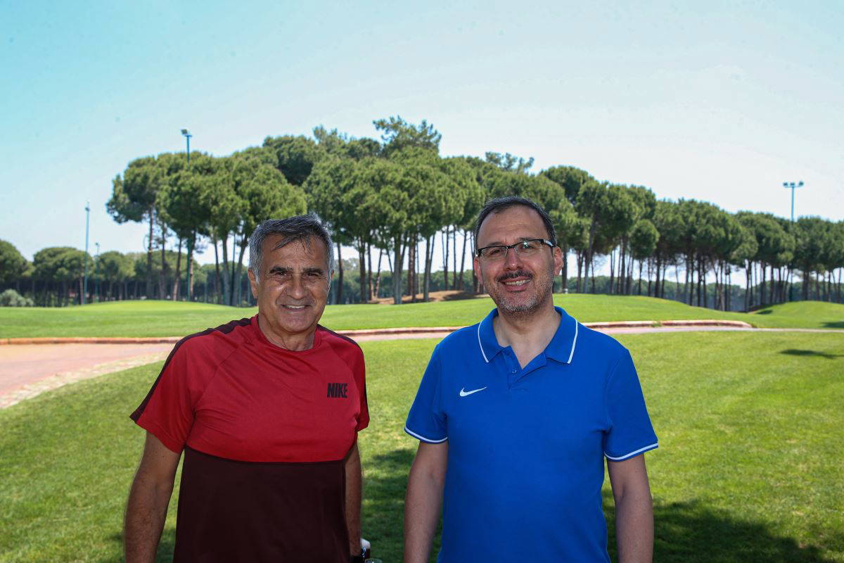 A Milli Futbol Takımı'nın yarın başlayacak EURO 2020 için Antalya'da geçirdiği kamp dönemi sırasında Gençlik ve Spor Bakanı Dr. Mehmet Muharrem Kasapoğlu, Milli Takım Teknik Direktörü Şenol Güneş ile bir araya gelerek keyifli bir söyleşi gerçekleştirdi. Bakan Kasapoğlu'nun sorularını içtenlikle yanıtlayan tecrübeli teknik adam, milli takımın son durumuyla ilgili bilgilerden en beğendiği yabancı futbolcuya, Avrupa Şampiyonası'ndaki beklentilerden unutamadığı karşılaşmaya kadar birçok konuya değindi.