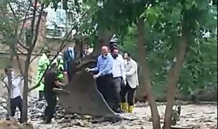 Selin vurduğu Giresun'da incelemelerini sürdüren İçişleri Bakanı Süleyman Soylu, Çevre ve Şehircilik Bakanı Murat Kurum ile Tarım ve Orman Bakanı Bekir Pakdemirli, Dereli ilçesinde bir mahallede mahsur kalan vatandaşlara iş makinesi operatörünün kepçesi üzerinde ulaştı. Yaklaşık 30 kişinin bulunduğu alana iş makinesi kepçesi üzerine ulaşan bakanlar, vatandaşlara geçmiş olsun dileklerinde bulundu. Bakanların bu anları, bir vatandaş tarafından cep telefonuyla görüntülendi.
