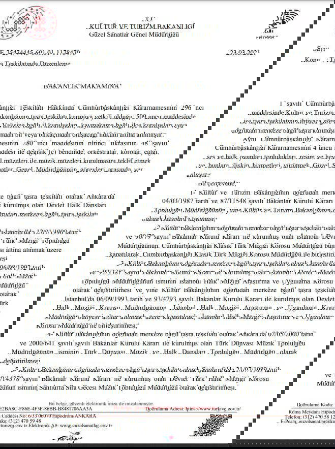 Sözkonusu düzenlemeler, Güzel Sanatlar Genel Müdürü Murat Salim Tokaç’ın 23.03.2021 tarihli yazısına Kültür ve Turizm Bakanı Mehmet Nuri Ersoy’un onay vermesinin ardından gerçekleştirildi.