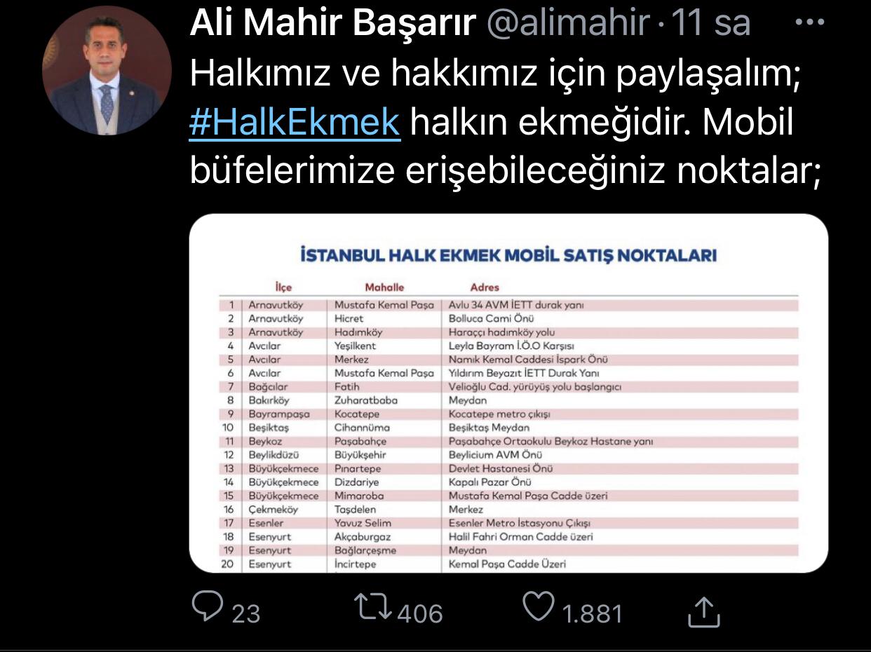 Öte yandan CHP’li milletvekilleri de karara tepki göstererek, yaptıkları paylaşımlarla ‘Mobil ekmek büfelerine’ erişim noktalarını paylaştı.