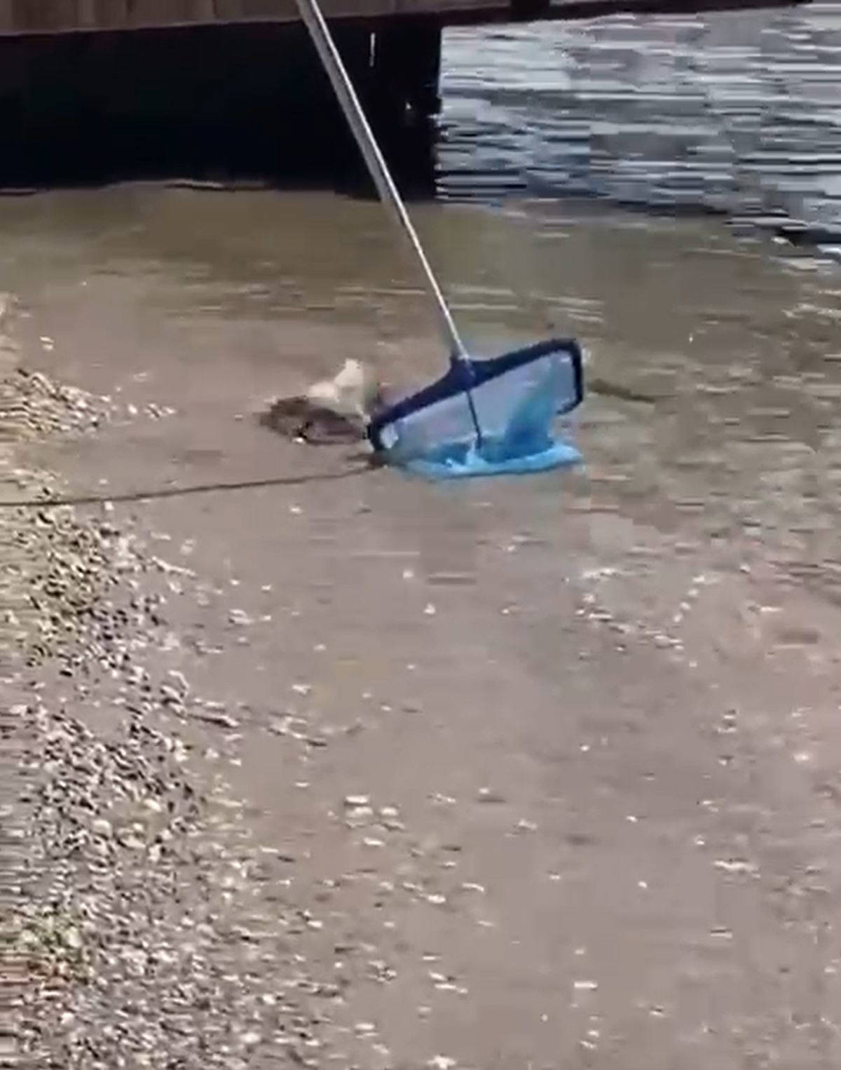 Plajın hemen kenarına kadar gelen birden fazla balon balığı kısa süreli paniğe neden olurken, orada bulunan görevlilerden ikisi balıklardan bazılarını ağlarla yakalayarak bölgeden uzaklaştırdı.