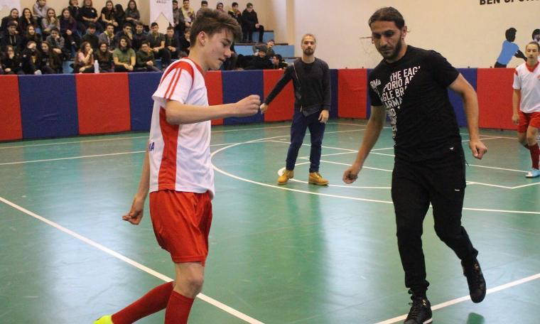Bandırmaspor Kulüp Başkanı Göksel Karlahan, Teknik Direktörü Ramazan Kurşunlu, futbolcular Doğan Can Davas, Yusuf Akyel, Âdem Alkaşi, Zülküf Özer ve Batuhan Karadeniz öğrencilerle spora bir araya geldiler. “Futbolun Sihirbazları” sloganıyla yola çıkılan projede ilk olarak Bandırmaspor futbolcularıyla birlikte öğrencilerle gösteri maçı yaptı. Bandırmasporlu futbolcular öğrencilerden bol bol alkış aldı. Daha sonra konferans salonunda öğrencilerle buluşan Bandırmaspor ekibine ilgi yoğun oldu. Öğrencilere tecrübelerini aktaran Kulüp Başkanı Göksel Karlahan, “Kendinize mutlaka bir hedef koyarak bu hedefe odaklanın. Derslerinizi ihmal etmeden spor yapmaya gayret edin. Kulüp olarak öncelikli hedefimiz alt yapıdan futbolcu çıkarmak ve tesisleşmeye önem vermektir. Bunlar olmadan zaten futbolda başarı gelmez“ dedi.