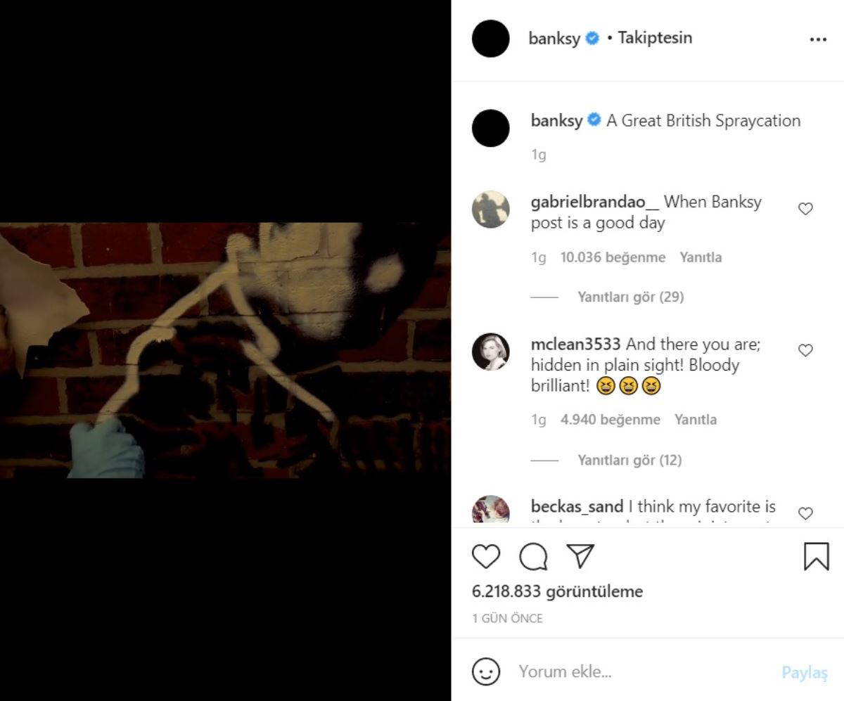 eserlerin kendine ait olduğunu doğruladı. Anonim sanatçı, resmi Instagram