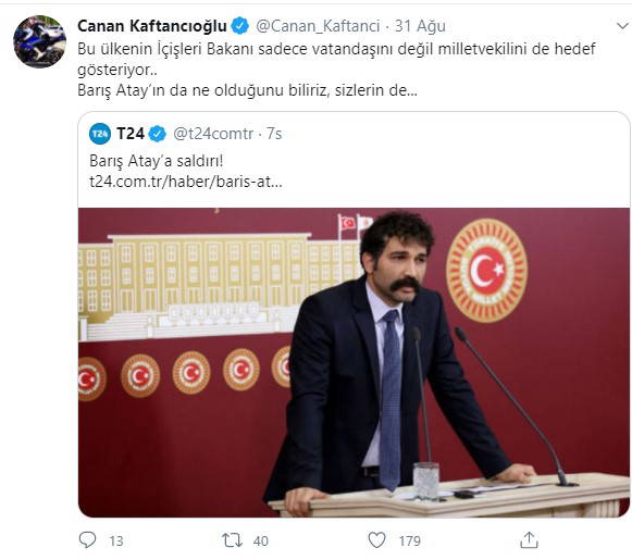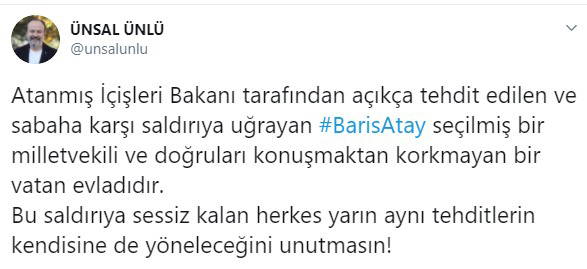 Türkiye İşçi Partisi Genel Başkan Yardımcısı ve Hatay Milletvekili Barış Atay'ın İçişleri Bakanı Süleyman Soylu ile yaşadığı tartışma sonrası saldırıya uğramasına tepkiler yükseldi. Atay'a sosyal medyada destek yağdı.